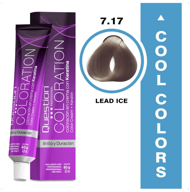 Coloration Question professional 7.17 – LEAD ICE (Rubio Medio Ceniza Perla Verde-Violeta)